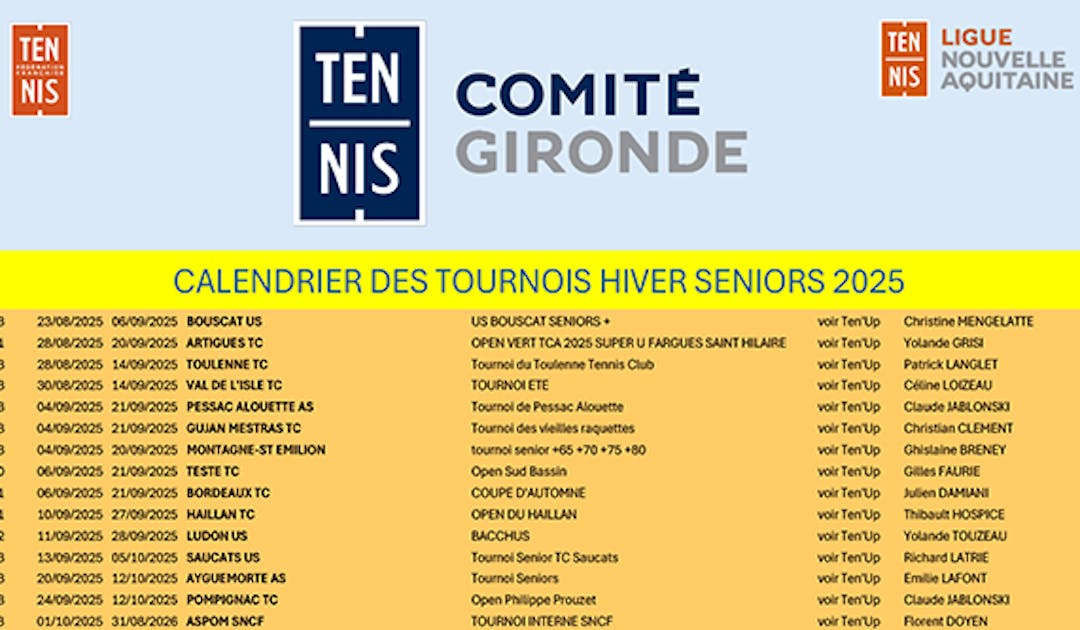 Calendrier Tournois Adultes HIVER Gironde 2026